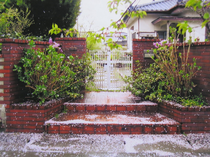 I got up in the morning and finished preparing breakfast. When I looked outside, I saw the cherry blossom petals had fallen so I took this photo. I prefer the fallen cherry blossoms than those in full bloom.